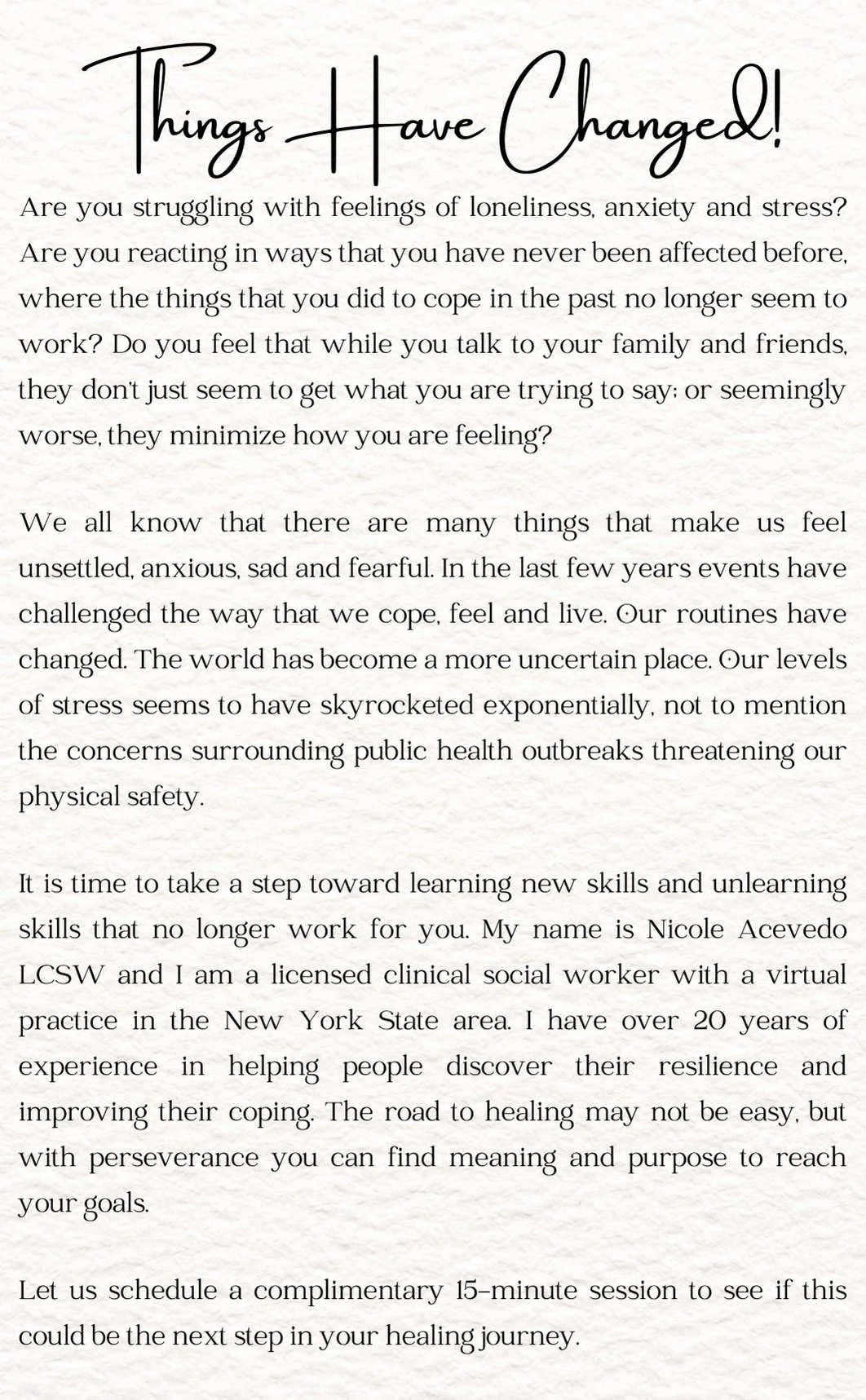 Healing and change will come at a cost of discomfort and struggle but the result is worth it! -Nicole Acevedo